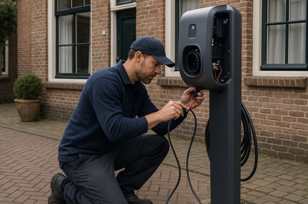 - Slimme laadpaal – verbonden met een app waarmee je laadmomenten kunt plannen, verbruik kunt monitoren en zelfs het laden kunt combineren met zonnepanelen.
