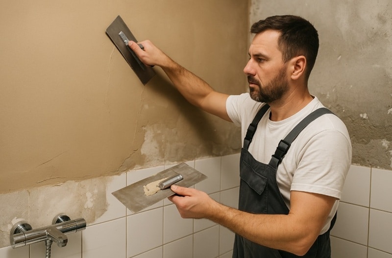 Tip: gebruik in de badkamer altijd een vochtbestendig mortel specifiek voor gebruik in vochtige ruimtes. Op de plaatsen waar direct water tegen de muren komt is stucmortel niet geschikt. Zorg er ook voor dat de ondergrond die u gaat stucen tegen vocht bestand is.