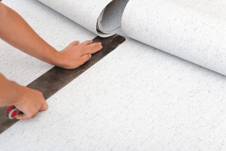 Na het lijmen van de PVC vloer dien je over te gaan tot het aandrukken van de vloer. Op deze manier voorkom je het vormen van luchtbellen. Nadat je deze stap hebt gevolgd kan je verder gaan met het aanbrengen van de plinten.