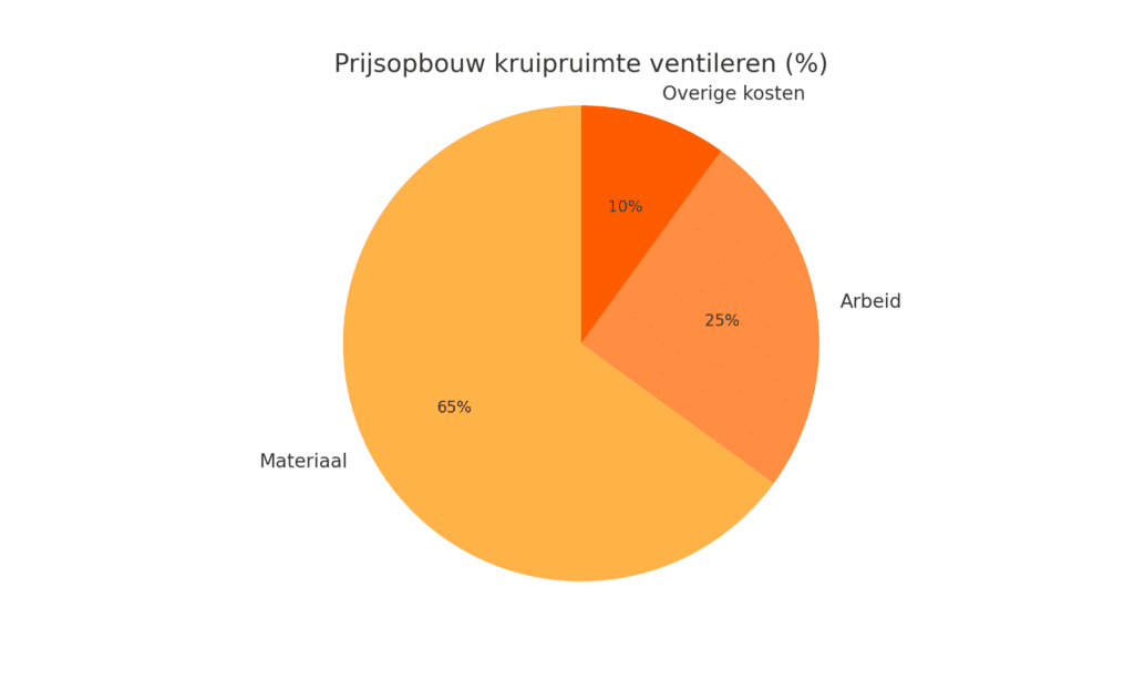 | Oppervlakte | Kleine of smalle ruimte vraagt minder materiaal. | Grote of diepe kruipruimte vereist meer roosters of ventilatoren. |