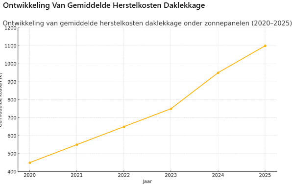 Toelichting: De stijging is jaarlijks, met een piek in 2024–2025. De vraag naar zonnepanelen blijft hoog, maar goed personeel is schaars. Dit maakt de kosten voor herstel en onderhoud aanzienlijk hoger dan voorheen.